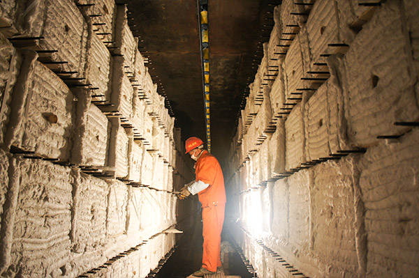 優(yōu)良的化學(xué)穩定性;優(yōu)良的熱穩定性;優(yōu)良的彈性,模塊處于預壓狀態(tài),在地面火炬爐襯砌筑完畢后,模塊的膨脹使爐襯無(wú)縫隙,并可補償纖維爐襯收縮,以提高纖維爐襯的絕熱性能,整體性能好;優(yōu)良的熱穩定性及抗熱震性;陶瓷纖維模塊安裝迅速,并且錨固件設置于壁襯冷面,可降低對錨固件材質(zhì)的要求??筛鶕蛻?hù)要求進(jìn)行保溫施工。